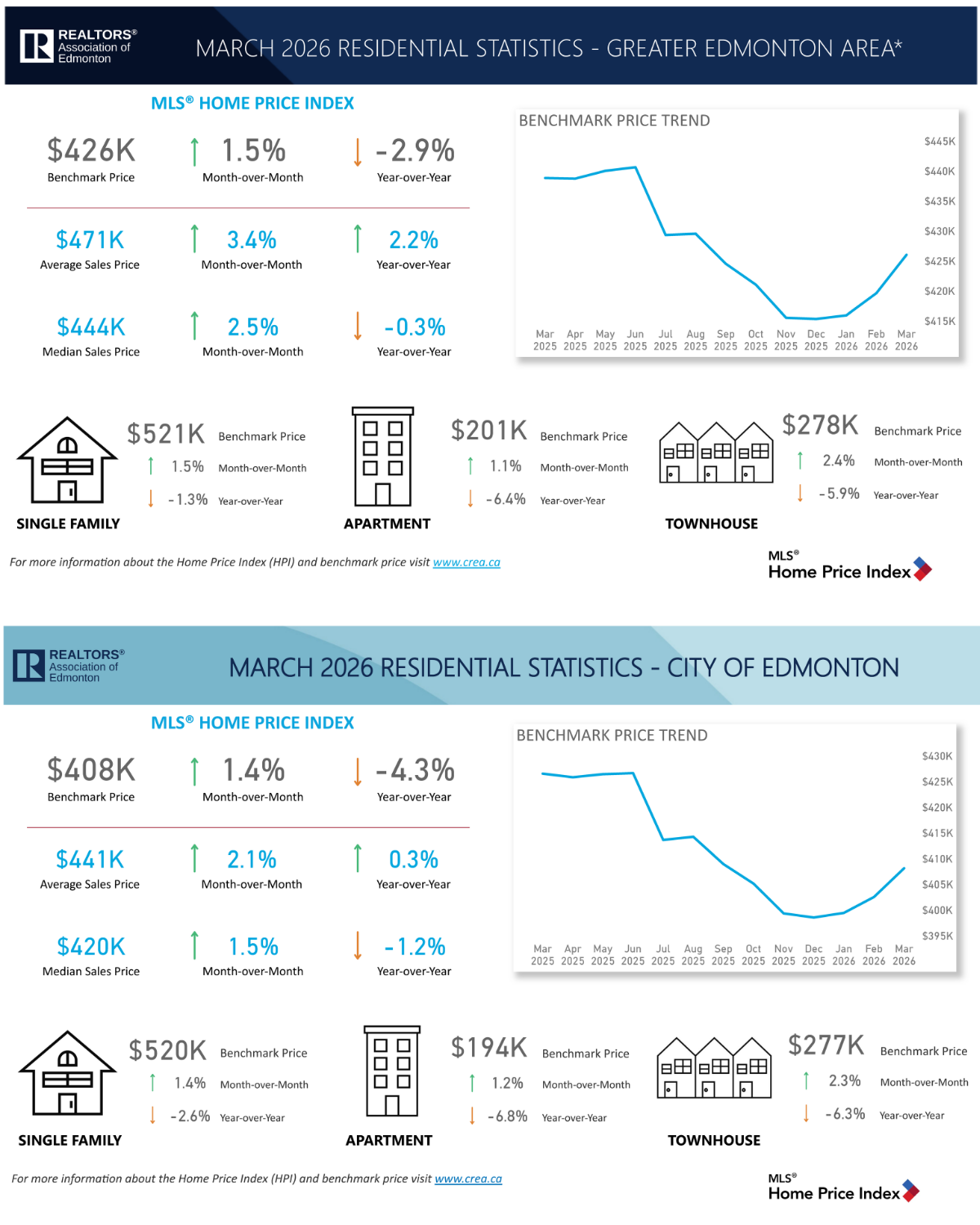 “It’s no surprise that month-to-month trends are showing an increase in activity, but certain key stats are giving us an indication of the kind of market we’re going to see this year. Compared to last year, there’s more available inventory and fewer sales; sellers looking for a quick sale may have to price strategically to get their property to stand out.” –Darlene Reid, 2026 Board Chair, REALTORS® Association of Edmonton